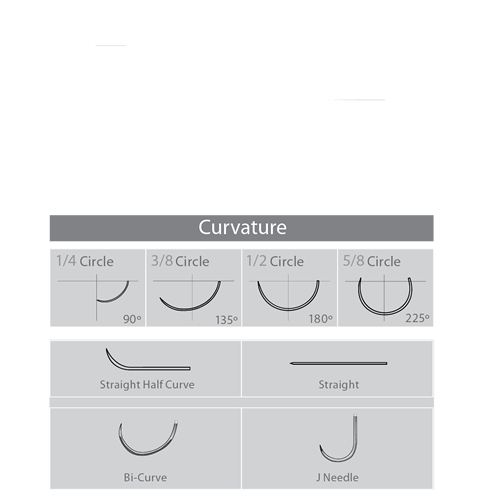 из нержавеющей коррозионностойкой стали, разрешённой к применению в медицине, различной степени изогнутости, (1/2, 2/8, 3/8, 5/8 и прямые), различной длины от