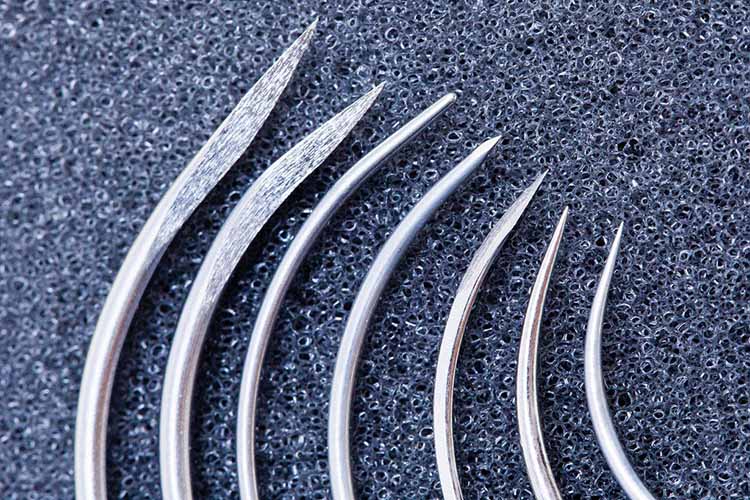 Изделия поставляются стерильными, в виде нитей в отрезках как отдельно, так и в комбинации с одной или двумя иглами атравматическими. Иглы изготавливаются из нержавеющей коррозионностойкой стали, разрешённой к применению в медицине, различной степени изогнутости, (1/2, 2/8, 3/8, 5/8 и прямые), различной длины от 5 мм до 70 мм, с различным профилем сечения и заточкой острия (колющие, режущие, шпательная, колюще-режущая, тупоконечные и др.).
